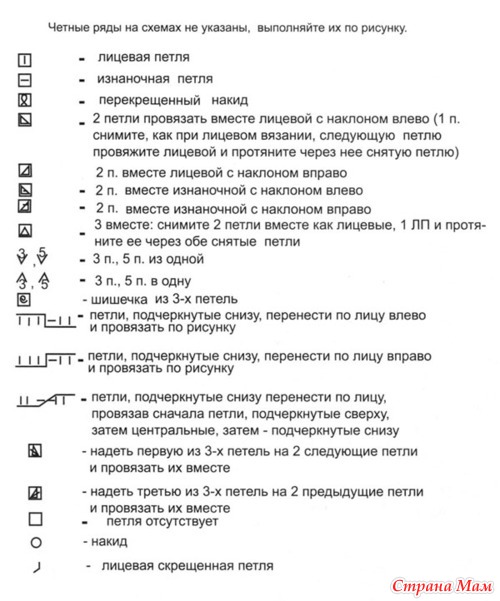 Плотность вязания:15 п. х 24 р.= 10x10 см.