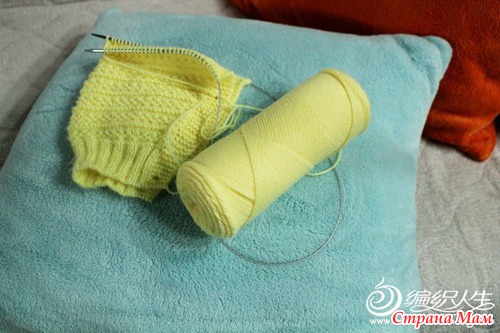 В последнем ряду резинки равномерно (по резинке) добавляю петли до 60, и дальше вяжу по схеме приведенной выше, правда еще 3 раза я добавлю по 2 петли по высоте штанишек. Довязываю штанину до нужной высоты, по шаговому шву 14 см.