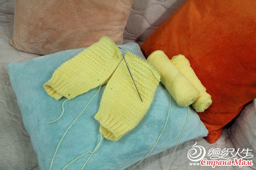 Рукава вяжем аналогично штанишкам длинной 14см. (это уже вместе с резинкой).