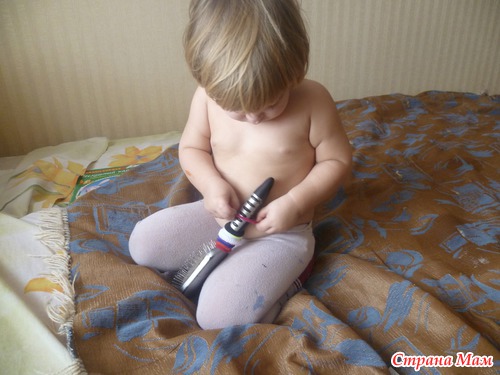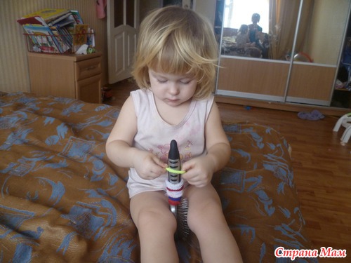Парикмахера очень быстро изучили. расчесываться не любим. Прически которые мама навела куклам, быстро уничтожили. Зато упражнение для пальчиков пошло на ура. Нужно на низать резинки на ручку от расчески