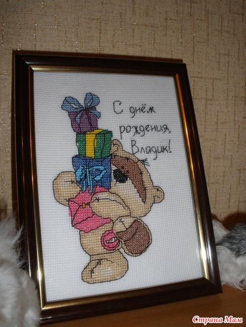 Помимо основного подарка решила вышить для него вот такую открытку – поздравление от Физзи Муна.
