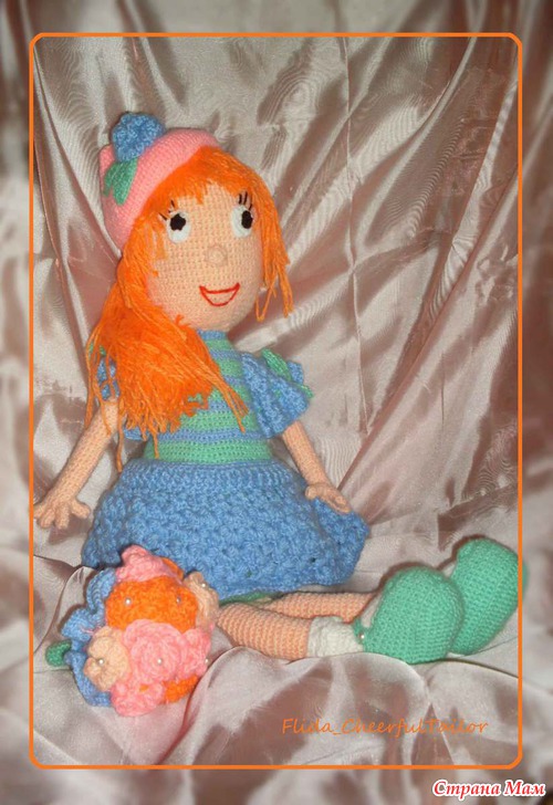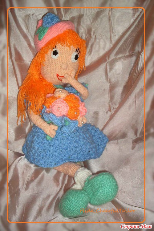 Осенью прошлого года я участвовала в он-лайн вязании такой вот куколки на сайте Фабрики Игрушек toy-fabric.ru. Вязали мы её поэтапно и довольно долго, месяц где-то. Зато не пришлось торопиться))) особенно мне как начинающей)))