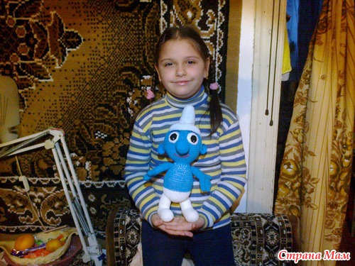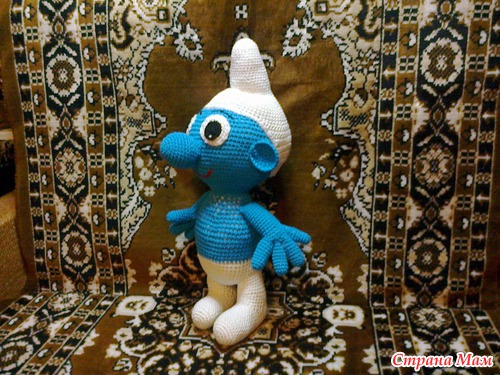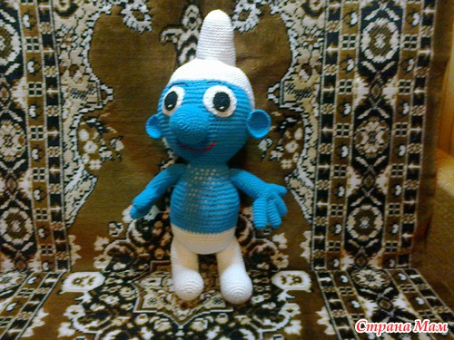 Дорогие страномамочки строго не судите. Вот такой смурфик у меня получился. Вязала по мк.http://alenalan.ru/post188316131/ Извините за качество фото так как снимали на телефон. Конечно есть ошибки, но это моя первая вязаная игрушка. Ребенок остался в восторге.