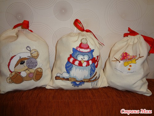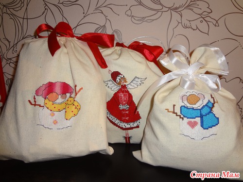 Спасибо подушку начала вышивать в ноябре, потом метрики еще вышивала, но не закончила..... а мешочки все в декабре, последний доделывала 31, пока муж практиковался на кухне