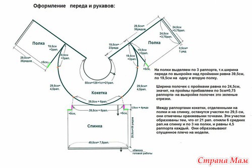 Поэтому на спинку отделим 6 раппортов, на полки – по 3 раппорта, на рукава – по 4,5раппорта.
