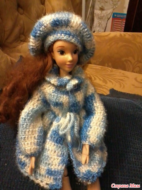 Жасмин не любит голых кукол- а у этой красавицы- американки платюшко поизносилось, вот я и слепила наряд из бывшего шарфика, получился этакий французский шарм))))))