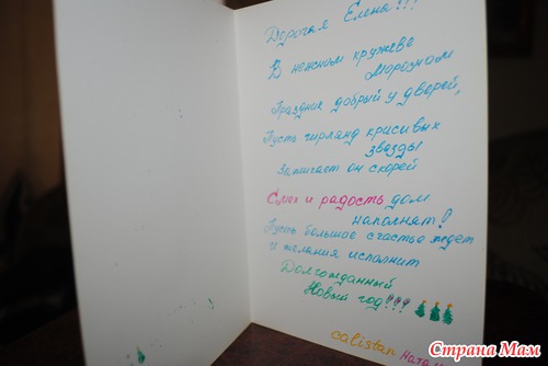 Участвовала впервые в такой игре и что-то я пропустила что в письмо можно вкладывать подарочек, но с меня причитается ( мы с calistan уже договорились)))) Спасибо огромнейшее calistan за очень красивую открытку и за подарок отдельная и большущая благодарность