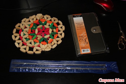 а это нужности для меня-спицы, блокнотик для записей и салфетки на бусины для нужного дела