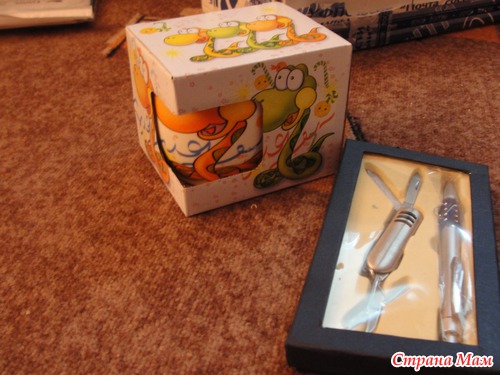 Это для моих родителей. Папе-ручка с ножичком. Маме-кружка. Она так обрадовалась. Впервые "посылочные" подарки приходят родителям.