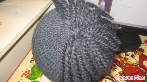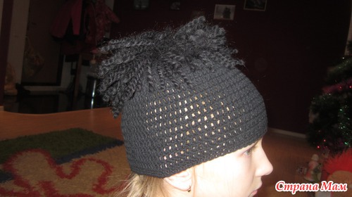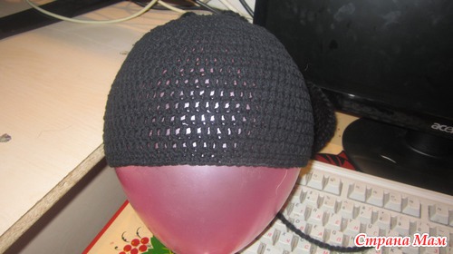Таким образом продолжаем вплетать нити до самого низа нашей шапочки.