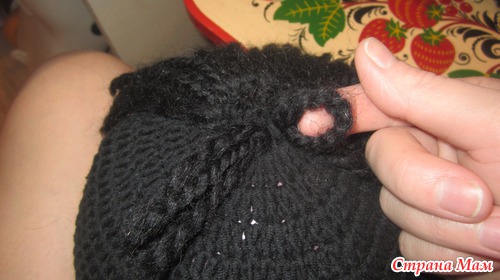 Совет Т. к. нитки у меня достаточно толстые, то я их закрепляла не на каждый ряд, а через один ряд и через 1-2 ССН по кругу.