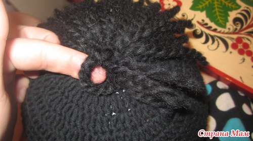 Затем берите по 2 – 4 отрезка и закрепляйте их на шапочке по аналогии с бахромой у шарфа. Начните работу от макушки, постепенно продвигаясь к краям.
