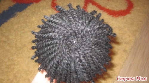 Теперь нарежьте пряжу на небольшие отрезки, такой длины, какой вы желаете видеть «волосы» вашего персонажа.
