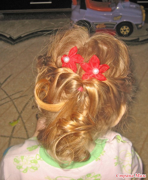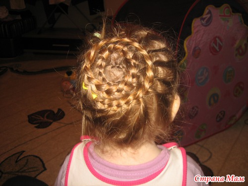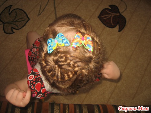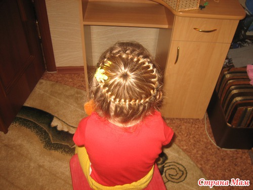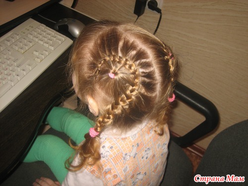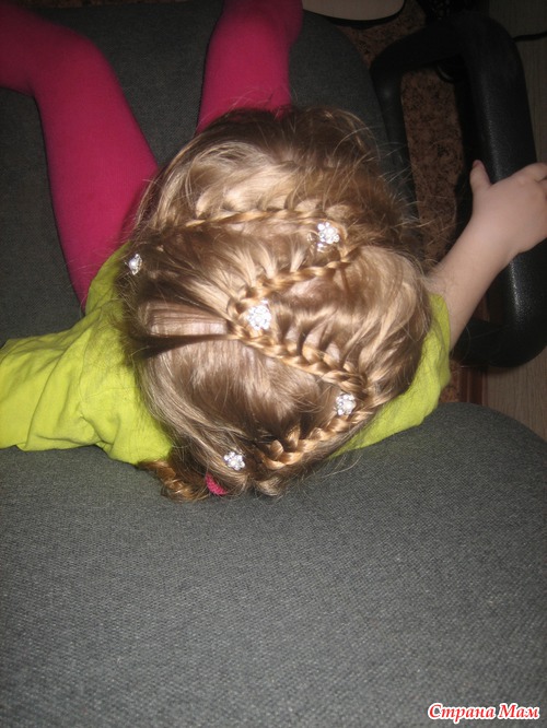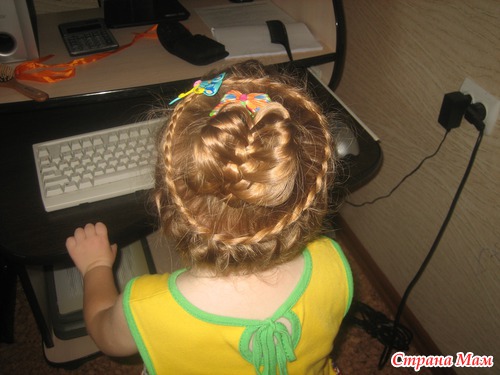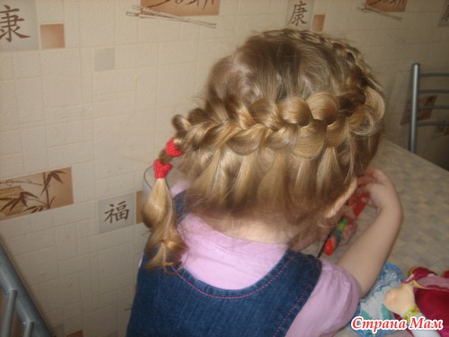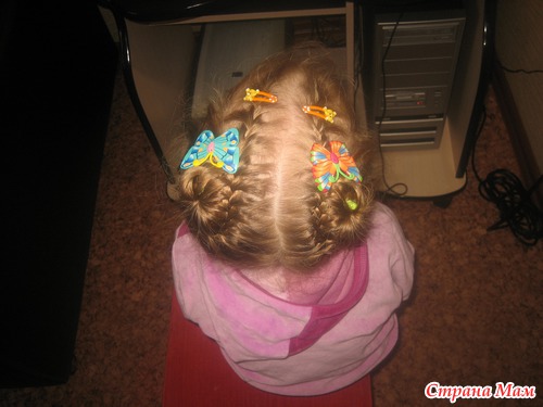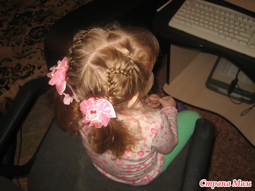 Не , моей без мультиков только простую можно успеть заплести. Еще утром в садик перед зеркалом, что-нить несложное, при этом она из коробочки вытряхивает все свои резиночки и на пальцы их одевает (у нее это лапки-царапки, как у кисы) и, конечно, вертится