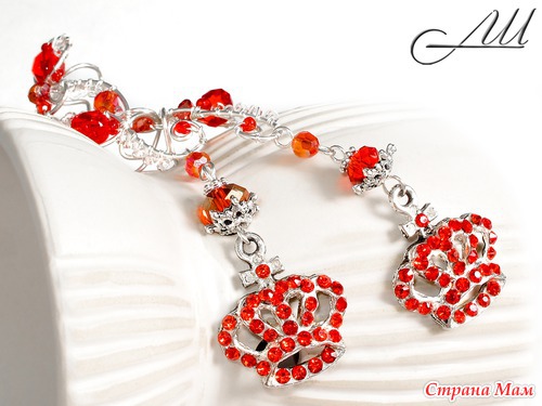 Сияющий комплект из чешского хрусталя и немецкой посеребрённой проволоки "Красная королева".