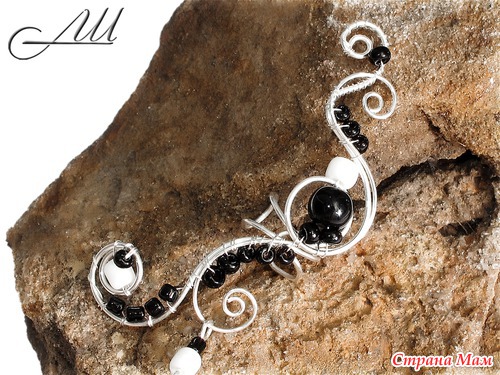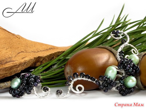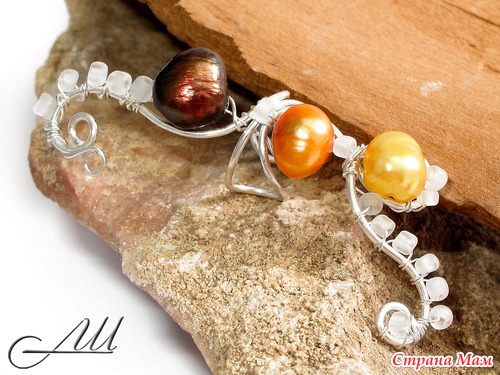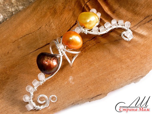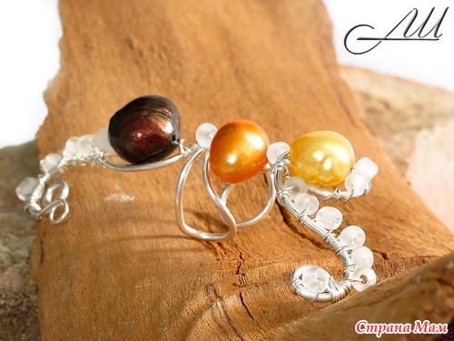 Материалы: Посеребрённая немецкая проволока, речной жемчуг, бисер