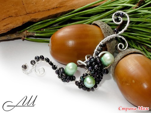 Материалы: Посеребрённая немецкая проволока, жемчуг культивированный, чешский бисер