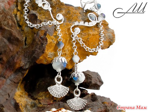 Материалы: Посеребрённая немецкая проволока, стеклянные чешские бусины, бисер, металлические цепочки и другие элементы