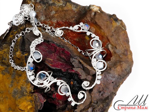 Материалы: Посеребрённая немецкая проволока, стеклянные чешские бусины, бисер, металлические элементы, ювелирные стразы