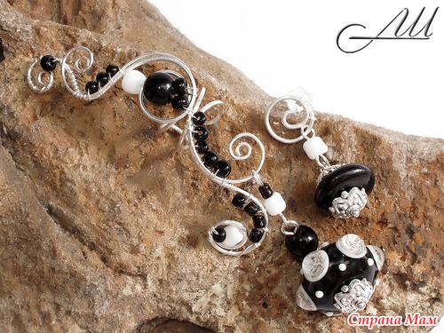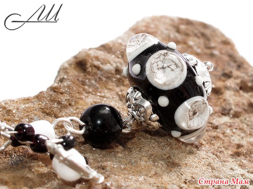 Чёрно-белый комплект "Ловец безымянных голосов". Кафф здесь украшает уникальная бусина ручной работы замечательной мастерицы Виктории Золототрубовой