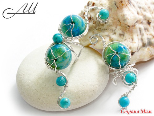 Комплект каффов "Дорога к Атлантиде" с бусинами хризоколлы. Невероятно красивый цвет!