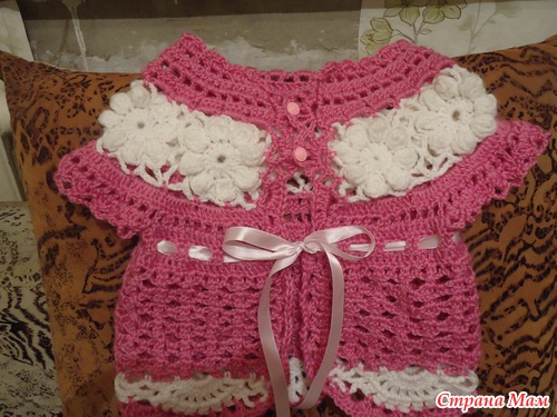 Мне на 2,5 года, думаю, нужно связать 10 цветочков. Болеро будет вот к этому сарафанчику https://www.stranamam.ru/photo/4192772/