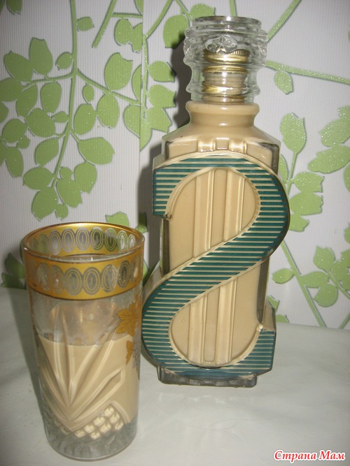 У меня получилось 2 бутылки по 0,5 литра и стакан, на фото только одна бутылка, т. к. я стала наливать в бутылку из-под коньяка, а когда закрывала крышку у меня отвалилось дно, и разлился мой ликерчик по столу. Это значит, нечего беременным алкоголь готовить.
