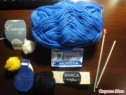 продолжить пряжей синего цвета