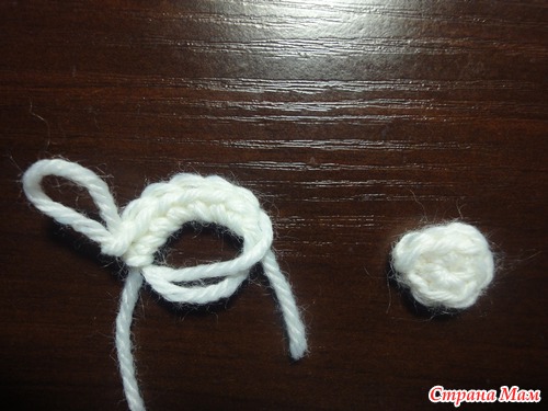 в кольцо амигуруми вяжем 6 ст б/н и соединяем первый и последний ст. закрепить и оборвать нить.