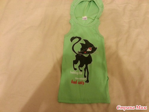 4. Туника с кошкой и капюшоном. Размер 110, сейчас как платье, чуть ниже колена, думаю что и летом в жару ее можно будет как платье носить