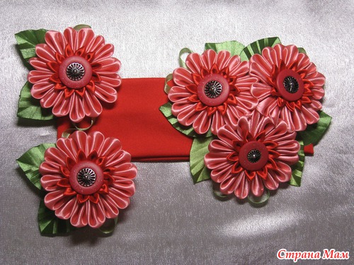 Вот попробовала делать герберы. Первый раз их делала. На картинках не особенно нравились, а сама сделала - вроде и ничего. Это комплект - повязка и резиночки Это повязочка, хотя может быть на летнюю панамку потом переклею, если не продадутся. Читать полностью
