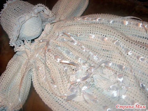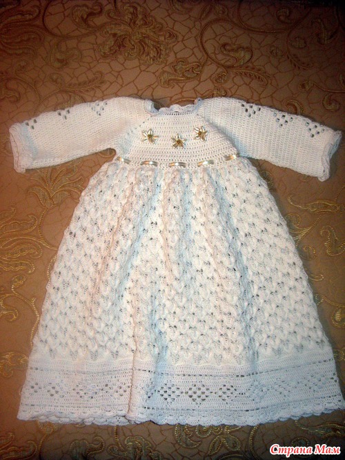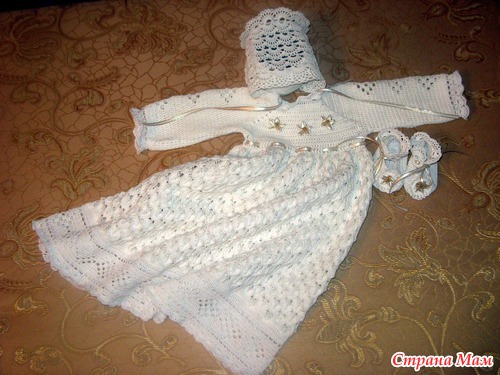 , а именно платьице, чепчик и пинетки. Выставляю на ваш суд.