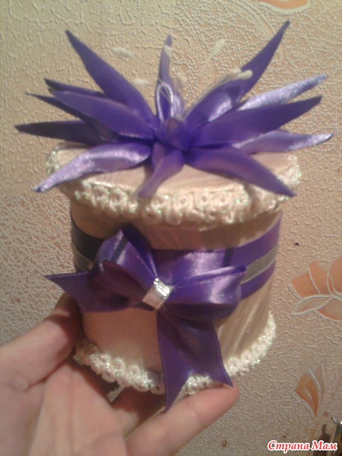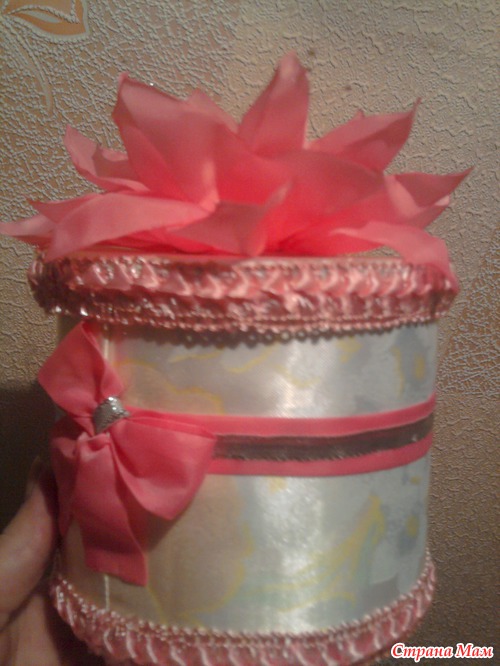 ... Ну, конечно, подобие у меня не такое красивое, как на картинке А вот такое: Вот с украшения шкатулок (новогодние подарки племянницам ) и начала изводить ленточки Вот такие вот цветочки у меня получились Читать полностью
