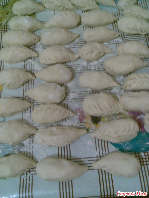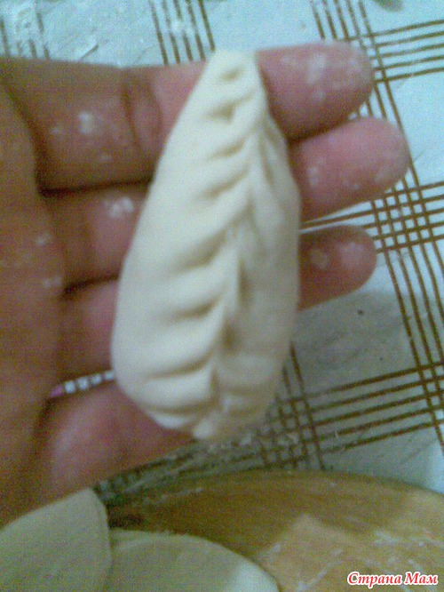 положив в середину каждого начинку плотно пощепала края теста.