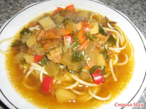 Блюдо вообще трудоемкое для меня, особенно приготовление лапши, так как с тестом я не люблю возиться, а есть люблю.