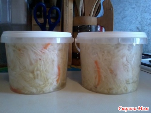 В ней фактически нет лишнего рассола и она всегда беленькая... Единственный минус, что она очень тонко и длинно нашинкована, поэтому ее надо разрезать или в тарелке или до закладки в бульон. Моркови в ней мало, но мне подходит, так как ни мой муж, ни дети отварную морковь не жалуют...