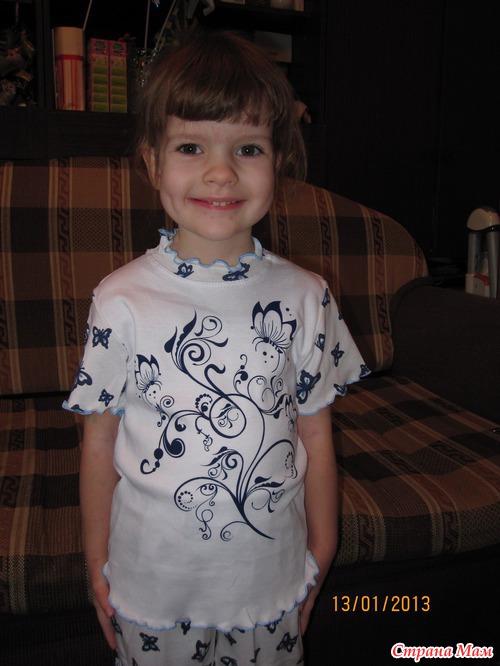 вроде бабочки, а мне сначала показалось что под гжель - супер, дочка снимать не хотела - на последних фотках в этих бриджиках