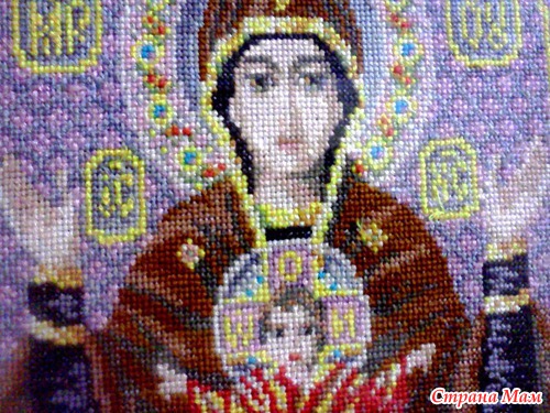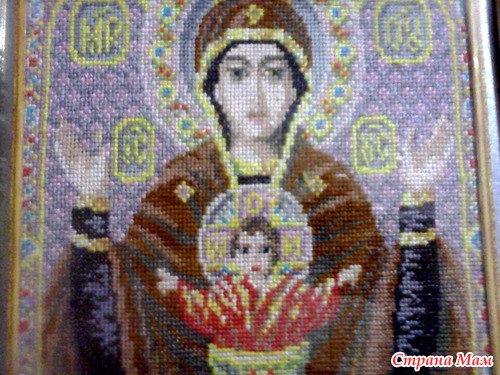А у меня никак не идут иконы. Одну бабушке в подарок едва домучала, тысячу раз ошибалась и переделывала, а там всего-то 100х120 крестиков было. Больше и не берусь за иконы.