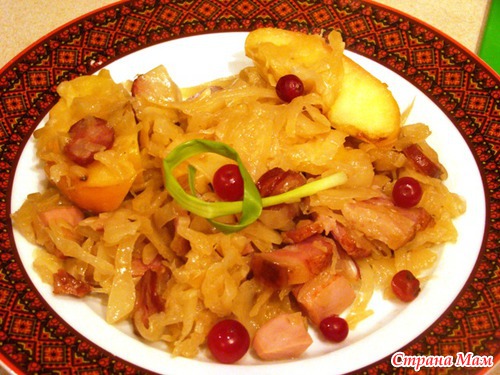 У меня это блюдо прочно ассоциируется с немецкой кухней, может быть из-за сочетания именно копченостей и капусты. Для его приготовления нам понадобятся: