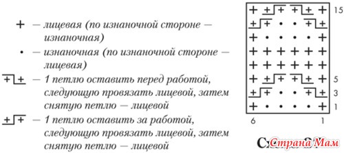 Плотность вязания: 24 п. х 30 р. = 10 х 10 см.