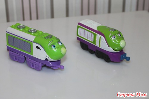 В самом начале нашей любви ни в одном из магазинов игрушек про Чаггингтон не было вообще. Потом появились раскраски, но немного. Потом в магазинах по чуть-чуть начали появляться игровые наборы и отдельные паровозики. Цена меня совершенно не устраивала - все игрушки идут под канадскими торговыми марками - Mega Block - это конструкторы, кстати, на мой взгляд абсолютно неудачные (если кому интересно, расскажу отдельно, почему) и наборы Die Cast - паровозики, вагоны, рельсы и прочие штучки из мультика. Между собой эти 2 вида наборов несовместимы.