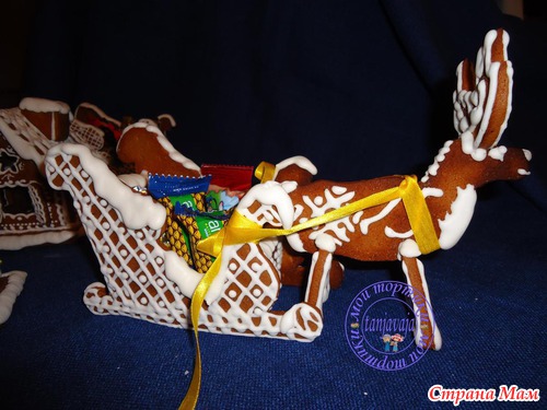 Делала сначала полнормы на пробу. Всё тесто потратила на детали домика, саней, шкатулки, оленя. И осталось буквально на пару печенюшек. Думала, что дочушка с пряностями есть не будет. Ага, где там. Слопала эти два печенка и стала канючить съесть какую-нибудь запчасть