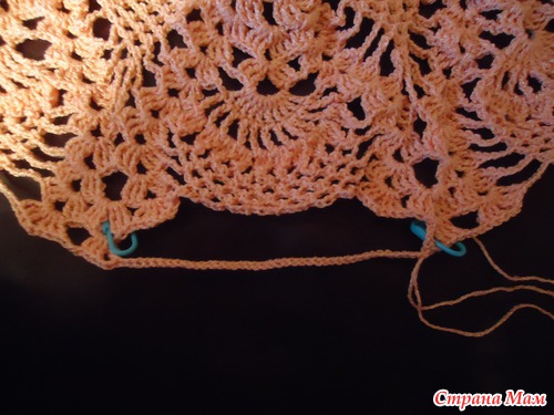 Т. к. я вяжу без рукавов, то обвязывать пройму буду так же как низ платья.
