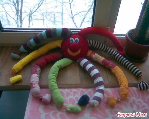 игрушку с шуршалками и гремелками, и по ее примеру сшила осьминога - голова его
