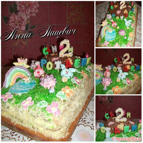Доченька очень любит мультик смешарики... А перед своим днем рождения она приболела... очень хотелось порадовать ее чем нибудь необычным... Пришлось включать фантазию и вот, то что получилось...
