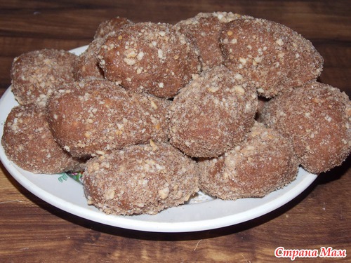 Смешать банку сгущеного молока и пачку слив. масла. В этот "крем" частями добавляем смесь- дробленое печенье (я это делала толкушкой для пюре печенья у меня ушло примерно 500 гр, это зависит от того какое печенье еще)+какао порошок (примерно 1-2ст. л., кто как любит)+ ванилин или ванильный сахар. Вымешиваем до тех пор пока не получится плотное тесто. Формируем руками картошечки и обваливаем в смеси- печенье+ какао+сахар.