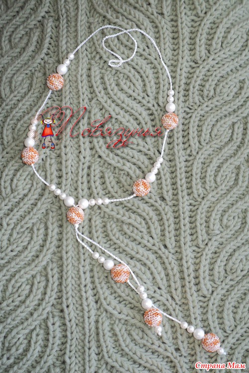 Бусы состоят из обвязанных бусин (полиамид), шнур связан из хлопка + бусины.