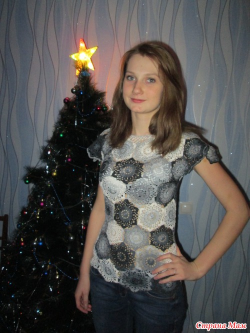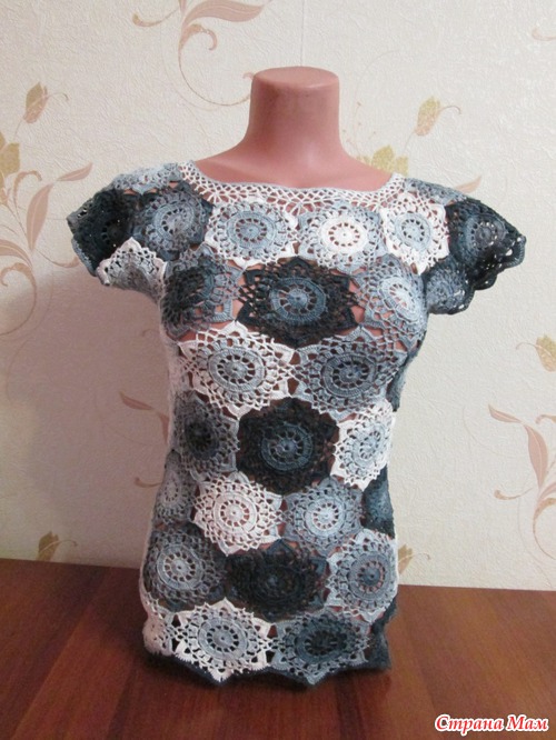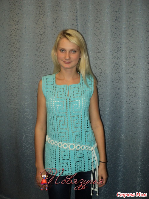 №2 Состав:55% хлопок 45% акрил. Связана поперечно узором "Греческие мотивы", Размер 44-46.