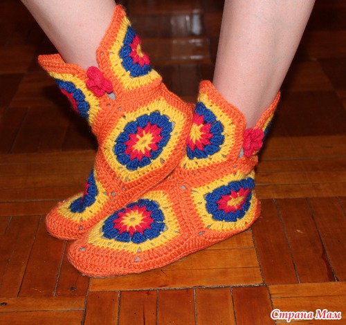 Смотрела-смотрела на замечательные красивые домашние угги наших странамамочек (спасибо вам, девочки, за вдохновение!)))) и решилась - вот и мои тапочки. теплейшие!!! у нас холодные бетонные полы, сегодня ногам даже жарко стало))))