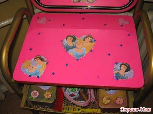 А для девочек своих сделала вот такое зеркало. На фото видно только столик, само зеркало формой как арка - этакий столик косметический. Был мой, но я его в детскую пристроила)